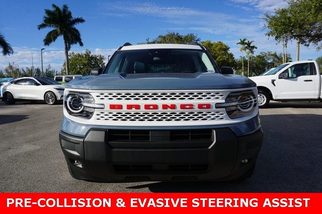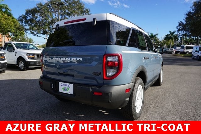 THIS VEHICLE INCLUDES THE FOLLOWING FEATURES AND OPTIONS: Convenience Package (Front Driver/Passenger Seat Back Map Pockets, Heated 8-Way Power Driver's Seat, LED Fog Lamps, Premium Wrapped Steering Wheel, and Universal Garage Door Opener (UGDO)), Equipment Group 250A, Bronco Sport Heritage AWD, 4D Sport Utility, 1.5L EcoBoost, 8-Speed Automatic, AWD, Azure Gray Metallic Tri-Coat, Navy Cloth, 4-Wheel Disc Brakes, 6 Speakers, ABS brakes, Air Conditioning, AM/FM radio: SiriusXM, AM/FM Stereo, Auto High-beam Headlights, Automatic temperature control, Brake assist, Compass, Delay-off headlights, Driver door bin, Driver vanity mirror, Dual front impact airbags, Dual front side impact airbags, Electronic Stability Control, Emergency communication system: SYNC 4 911 Assist, Four wheel independent suspension, Front anti-roll bar, Front Bucket Seats, Front Center Armrest, Front reading lights, Fully automatic headlights, Heated door mirrors, Illuminated entry, Knee airbag, Low tire pressure warning, Occupant sensing airbag, Outside temperature display, Overhead airbag, Overhead console, Panic alarm, Passenger door bin, Passenger vanity mirror, Plaid Cloth Front Bucket Seats, Power door mirrors, Power steering, Power windows, Radio data system, Rear anti-roll bar, Rear Parking Sensors, Rear reading lights, Rear seat center armrest, Rear window defroster, Rear window wiper, Remote keyless entry, Security system, SiriusXM, Speed control, Speed-sensing steering, Speed-Sensitive Wipers, Split folding rear seat, Steering wheel mounted audio controls, SYNC 4 w/Enhanced Voice Recognition, Tachometer, Telescoping steering wheel, Tilt steering wheel, Traction control, Trip computer, Variably intermittent wipers, and Wheels: 17 Oxford White-Painted Aluminum. Not all customers may qualify for all rebates listed, see dealer for details. Price includes: $2000 - Retail Customer Cash. Exp. 03/31/2026