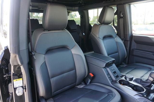THIS VEHICLE INCLUDES THE FOLLOWING FEATURES AND OPTIONS: Equipment Group 314A Lux Package (18 Bright Machined Aluminum Wheels, 360-Degree Camera, Adaptive Cruise Control, Evasive Steering Assist, Front Parking Sensors, Heated Leather-Trimmed/Vinyl Bucket Seats, Information on Demand Panel, Radio: B&O Sound System by Bang and Olufsen, and Sideview Mirrors), Ford Connectivity Package (1-Year Included), Bronco Outer Banks Advanced HardTop 4WD, 4D Sport Utility, 2.7L EcoBoost V6, 4WD, Shadow Black, Smoked Leather, 4-Wheel Disc Brakes, ABS brakes, Air Conditioning, AM/FM radio: SiriusXM with 360L, AM/FM Stereo, Auto High-beam Headlights, Auto-dimming Rear-View mirror, Automatic temperature control, Brake assist, Compass, Connected Navigation, Delay-off headlights, Driver door bin, Driver vanity mirror, Dual front impact airbags, Dual front side impact airbags, Electronic Stability Control, Emergency communication system: 911 Assist, Exterior Parking Camera Rear, Front anti-roll bar, Front Bucket Seats, Front Center Armrest, Front dual zone A/C, Front fog lights, Front reading lights, Front wheel independent suspension, Fully automatic headlights, Hard Top Sound Deadening Headliner, Heated door mirrors, Heated front seats, Heated steering wheel, Illuminated entry, Integrated roll-over protection, Leather Shift Knob, Low tire pressure warning, Navigation system: Connected Navigation, Occupant sensing airbag, Outside temperature display, Overhead airbag, Overhead console, Panic alarm, Passenger door bin, Passenger vanity mirror, Power door mirrors, Power driver seat, Power passenger seat, Power steering, Power windows, Radio data system, Re Not all customers may qualify for all rebates listed, see dealer for details. Price includes: $750 - Retail Customer Cash. Exp. 0