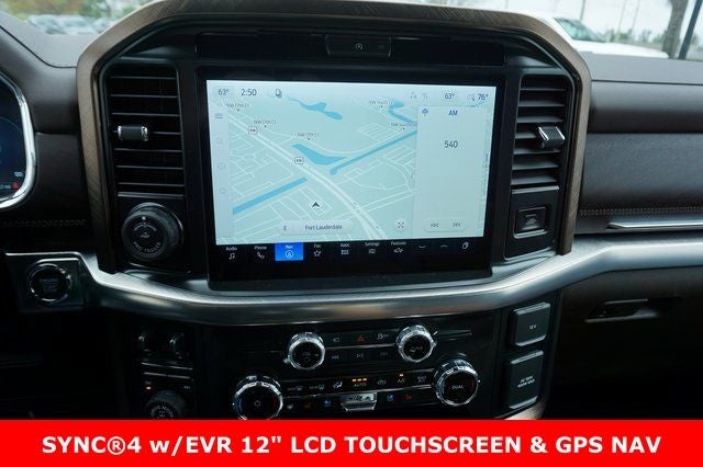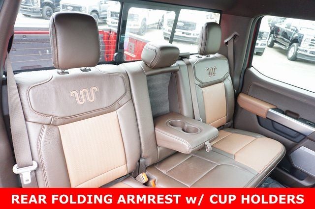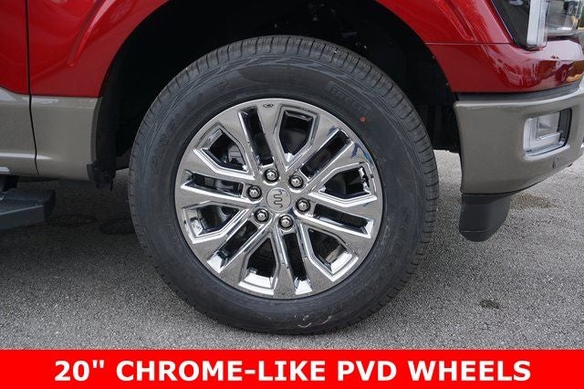 THIS VEHICLE INCLUDES THE FOLLOWING FEATURES AND OPTIONS: Equipment Group 600A (Electronic Locking with 3.55 Axle Ratio, King Ranch Multicontour Leather Bucket Seats, Radio: B&O Sound System by Bang and Olufsen, SYNC 4 with Enhanced Voice Recognition, and Wheels: 20 Chrome-Like PVD), Ford Connectivity Package (1-Year Included), GVWR: 7,100 lbs Payload Package, Internet access capable: 5G Modem - Ford Connectivity Package, F-150 King Ranch 4WD, 4D SuperCrew, 3.5L V6 EcoBoost, 10-Speed Automatic, 4WD, Ruby Red Metallic Tinted Clearcoat, Java Leather, 4-Wheel Disc Brakes, ABS brakes, Adjustable pedals, Air Conditioning, AM/FM radio: SiriusXM with 360L, Auto High-beam Headlights, Auto tilt-away steering wheel, Auto-dimming door mirrors, Auto-dimming Rear-View mirror, Automatic temperature control, Brake assist, Compass, Delay-off headlights, Driver door bin, Driver vanity mirror, Dual front impact airbags, Dual front side impact airbags, Electronic Stability Control, Emergency communication system: SYNC 4 911 Assist, Front anti-roll bar, Front Bucket Seats, Front Center Armrest, Front dual zone A/C, Front fog lights, Front reading lights, Front wheel independent suspension, Fully automatic headlights, Garage door transmitter, Genuine wood dashboard insert, Heated door mirrors, Heated front seats, Heated rear seats, Heated steering wheel, Illuminated entry, Leather steering wheel, Low tire pressure warning, Memory seat, Navigation system: Connected Navigation, Occupant sensing airbag, Outside temperature display, Overhead airbag, Overhead console, Panic alarm, Passenger door bin, Passenger vanity mirror, Pedal memor