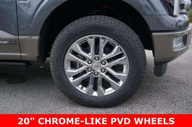 THIS VEHICLE INCLUDES THE FOLLOWING FEATURES AND OPTIONS: Equipment Group 601A High (King Ranch Multicontour Leather Bucket Seats, Power-Deployable Running Boards, and Wheels: 20 Chrome-Like PVD), Ford Connectivity Package (1-Year Included), FX4 Off-Road Package (4x4 FX4 Off-Road Bodyside Decal, Hill Descent Control, Monotube Rear Shocks, Off-Road Tuned Front Shock Absorbers, and Rock Crawl Mode), GVWR: 7,400 lbs Payload Package, Internet access capable: 5G Modem - Ford Connectivity Package, F-150 King Ranch PowerBoost Hybrid FX4 4WD, 4D SuperCrew, 3.5L PowerBoost Full-Hybrid V6, 10-Speed Automatic, 4WD, Carbonized Gray Metallic, Java Leather, 4-Wheel Disc Brakes, ABS brakes, Adjustable pedals, Air Conditioning, AM/FM radio: SiriusXM with 360L, Auto High-beam Headlights, Auto tilt-away steering wheel, Auto-dimming door mirrors, Auto-dimming Rear-View mirror, Automatic temperature control, Brake assist, Compass, Delay-off headlights, Driver door bin, Driver vanity mirror, Driver's Side SecuriCode Keyless-Entry Keypad, Dual front impact airbags, Dual front side impact airbags, Electronic Locking with 3.73 Axle Ratio, Electronic Stability Control