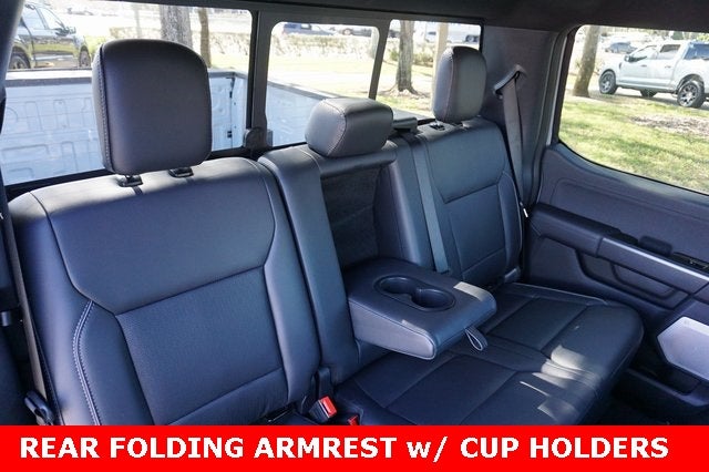 THIS VEHICLE INCLUDES THE FOLLOWING FEATURES AND OPTIONS: Equipment Group 502A High (2nd Row Heated Seats, ActiveX Trimmed Bucket Seats, Ambient Lighting - Ice Blue Color Only, Head-Up Display, Illuminated Driver and Passenger Visors, Power-Adjustable Pedals with Memory, and Power-Sliding Rear Window), Ford Connectivity Package (1-Year Included), GVWR: 6,800 lbs Payload Package, Internet access capable: 5G Modem - Ford Connectivity Package, Lariat Black Appearance Package (Black Exterior Badging, Black Grille, Black Taillamp Bezels, Body-Color Front and Rear Bumpers, Body-Color Skull Caps and Door Handles, Dark Interior Appliques, Gray Box Side Decal, and Matte Black Tailgate F-150 Decal), Mobile Office Package (Console Worksurface, Partitioned Lockable Rear Storage, and Wireless Charging), F-150 Lariat 5.0L, 4D SuperCrew, 5.0L V8, 10-Speed Automatic, RWD, Avalanche, Black Activex, 3.15 Axle Ratio, 4-Wheel Disc Brakes, 6 Black Running Boards, ABS brakes, Air Conditioning, AM/FM radio: SiriusXM with 360L, Auto High-beam Headlights, Auto-dimming door mirrors, Auto-dimming Rear-View mirror, Automatic temperature control, Brake assist, Compass, Delay-off headlights, Driver door bin, Driver vanity mirror, Dual front impact airbags, Dual front side impact airbags, Electronic Stability Control, Emergency communi