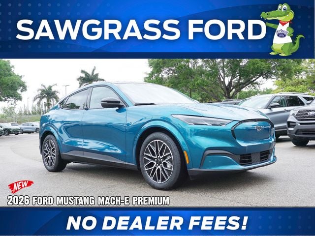NO GAMES! PRICE PLUS SALES TAX AND TAG ONLY...NO DEALER FEES!!! Here at Sawgrass Ford we NEVER charge a DEALER FEE...WE MAKE IT EASY. 115/104 City/Highway MPG ***NO DEALER FEE***, Mustang Mach-E Premium, 4D Sport Utility, Electric Motor, Single-Speed Automatic, RWD, Adriatic Blue Metallic, Black Activex, 10 Speakers, 4-Wheel Disc Brakes, ABS brakes, Air Conditioning, AM/FM radio: SiriusXM with 360L, Apple CarPlay/Android Auto, Auto High-beam Headlights, Auto-dimming Rear-View mirror, Automatic temperature control, BlueCruise (equipment + 1 Year + 90-Day Plan), Brake assist, Bumpers: body-color, Compass, Delay-off headlights, Drainable Frunk, Driver door bin, Driver vanity mirror, Dual front impact airbags, Dual front side impact airbags, Electronic Stability Control, Emergency communication system: 911 Assist, Equipment Group 300A Standard Package, Exterior Parking Camera Rear, Ford Co-Pilot360 Active 2.0, Four wheel independent suspension, Front anti-roll bar, Front Bucket Seats, Front Center Armrest, Front dual zone A/C, Front reading lights, Fully automatic headlights, Heated door mirrors, Heated front seats, Heated steering wheel, Heated/Ventilated ActiveX Bucket Seats, Illuminated entry, Knee airbag, Low tire pressure warning, Memory seat, Mobile Power Cord (120V/240V), NACS Fast Charging Adapter, Navigation system: Connected Navigation, Occupant sensing airbag, Outside temperature display, Overhead airbag, Overhead console, Panic alarm, Panoramic Fixed-Glass Roof Package, Passenger door bin, Passenger vanity mirror, Power door mirrors, Power driver seat, Power passenger seat, Power steering, Power windows, Radio data system, Radio: B&O Sound System by Bang and Olufsen, Rain sensing wipers, Rear anti-roll bar, Rear seat center armrest, Rear side impact airbag, Rear window defroster, Rear window wiper, Remote keyless entry, Security system, SiriusXM with 360L, Speed control, Speed-sensing steering, Speed-Sensitive Wipers, Split folding rear seat, Spoiler, Steering wheel mounted audio controls, SYNC 4A with Enhanced Voice Recognition, Technology Package, Telescoping steering wheel, Tilt steering wheel, Traction control, Trip computer, Turn signal indicator mirrors, Variably intermittent wipers, Ventilated front seats, Wheels: 19 Bright Machined-Face Aluminum.