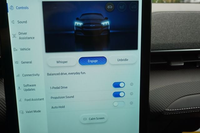 THIS VEHICLE INCLUDES THE FOLLOWING FEATURES AND OPTIONS: Equipment Group 300A Standard Package (Heated/Ventilated ActiveX Bucket Seats, Radio: B&O Sound System by Bang and Olufsen, SiriusXM with 360L, SYNC 4A with Enhanced Voice Recognition, and Wheels: 19 Bright Machined-Face Aluminum), Panoramic Fixed-Glass Roof Package, Technology Package (BlueCruise (equipment + 1 Year + 90-Day Plan) and Ford Co-Pilot360 Active 2.0), Mustang Mach-E Premium, 4D Sport Utility, Electric Motor, Single-Speed Automatic, RWD, Adriatic Blue Metallic, Black Activex, 10 Speakers, 4-Wheel Disc Brakes, ABS brakes, Air Conditioning, AM/FM radio: SiriusXM with 360L, Apple CarPlay/Android Auto, Auto High-beam Headlights, Auto-dimming Rear-View mirror, Automatic temperature control, Brake assist, Bumpers: body-color, Compass, Delay-off headlights, Drainable Frunk, Driver door bin, Driver vanity mirror, Dual front impact airbags, Dual front side impact airbags, Electronic Stability Control, Emergency communication system: 911 Assist, Exterior Parking Camera Rear, Four wheel independent suspension, Front anti-roll bar, Front Bucket Seats, Front Center Armrest, Front dual zone A/C, Front reading lights, Fully automatic headlights, Heated door mirrors, Heated front seats, Heated steering wheel, Illuminated entry, Knee airbag, Low tire pressure warning, Memory seat, Mobile Power Cord (120V/240V), NACS Fast Charging Adapter, Navigation system: Connected Navigation, Occupant sensing airbag, Outside temperature display, Overhead airbag
