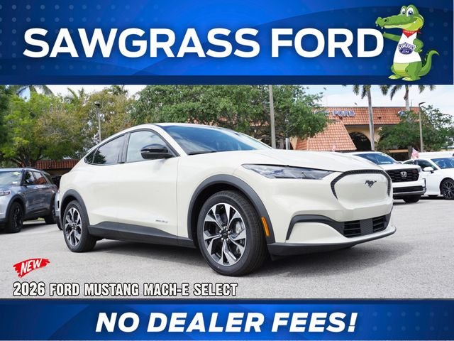 Recent Arrival! NO GAMES! PRICE PLUS SALES TAX AND TAG ONLY...NO DEALER FEES!!! Here at Sawgrass Ford we NEVER charge a DEALER FEE...WE MAKE IT EASY. 106/98 City/Highway MPG ***NO DEALER FEE***, Mustang Mach-E Select, 4D Sport Utility, Dual Electric Motor, Single-Speed Automatic, RWD, Desert Sand, Black Activex, 4-Wheel Disc Brakes, 6 Speakers, ABS brakes, ActiveX Bucket Seats, Air Conditioning, AM/FM radio: SiriusXM with 360L, AM/FM Stereo, Apple CarPlay/Android Auto, Auto High-beam Headlights, Auto-dimming Rear-View mirror, Automatic temperature control, Brake assist, Bumpers: body-color, Compass, Delay-off headlights, Drainable Frunk, Driver door bin, Driver vanity mirror, Dual front impact airbags, Dual front side impact airbags, Electronic Stability Control, Emergency communication system: 911 Assist, Equipment Group 100A Standard Package, Exterior Parking Camera Rear, Four wheel independent suspension, Front anti-roll bar, Front Bucket Seats, Front Center Armrest, Front dual zone A/C, Front reading lights, Fully automatic headlights, Heated door mirrors, Illuminated entry, Knee airbag, Low tire pressure warning, Mobile Power Cord (120V/240V), NACS Fast Charging Adapter, Navigation system: Connected Navigation, Occupant sensing airbag, Outside temperature display, Overhead airbag, Overhead console, Panic alarm, Passenger door bin, Passenger vanity mirror, Power door mirrors, Power driver seat, Power steering, Power windows, Radio data system, Rain sensing wipers, Rear anti-roll bar, Rear seat center armrest, Rear side impact airbag, Rear window defroster, Rear window wiper, Remote keyless entry, Security system, SiriusXM with 360L, Speed control, Speed-sensing steering, Speed-Sensitive Wipers, Split folding rear seat, Spoiler, Steering wheel mounted audio controls, SYNC 4A with Enhanced Voice Recognition, Telescoping steering wheel, Tilt steering wheel, Traction control, Trip computer, Turn signal indicator mirrors, Variably intermittent wipers, Wheels: 19 Machined-Face Aluminum.
