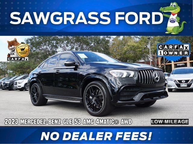 NO GAMES! PRICE PLUS SALES TAX AND TAG ONLY...NO DEALER FEES!!! Here at Sawgrass Ford we NEVER charge a DEALER FEE...WE MAKE IT EASY. CARFAX One-Owner. Priced below KBB Fair Purchase Price! ***NO DEALER FEE***, ***CARFAX ONE OWNER***, ***FREE CARFAX HISTORY REPORT***, GLE GLE 53 AMG® 4MATIC®, 4D Coupe, 3.0L I6 Turbo, 9-Speed Automatic, 4MATIC®, Black, Black w/Diamond Stitching w/Exclusive Nappa Leather Upholstery, 13 Speakers, 4-Wheel Disc Brakes, ABS brakes, Adaptive suspension, Air Conditioning, AM/FM radio: SiriusXM, Anti-whiplash front head restraints, Apple CarPlay®/Android Auto®, Auto High-beam Headlights, Auto tilt-away steering wheel, Auto-dimming door mirrors, Auto-dimming Rear-View mirror, Auto-leveling suspension, Automatic temperature control, Axle Ratio: TBD, Brake assist, Bumpers: body-color, Compass, Delay-off headlights, Driver door bin, Driver vanity mirror, Dual front impact airbags, Dual front side impact airbags, Electronic Stability Control, Emergency communication system: eCall Emergency System, Exterior Parking Camera Rear, Four wheel independent suspension, Front anti-roll bar, Front Bucket Seats, Front Center Armrest, Front dual zone A/C, Front reading lights, Fully automatic headlights, Garage door transmitter: HomeLink, Genuine wood console insert, Genuine wood dashboard insert, Genuine wood door panel insert, Heated door mirrors, Heated front seats, Heated Power Front Seats w/Driver Memory, High Performance Tires, Illuminated entry, Knee airbag, Leather steering wheel, Low tire pressure warning, MB-Tex Upholstery w/DINAMICA Inserts, MB-Tex Upper Dash, Memory seat, Navigation system: MBUX, Occupant sensing airbag, Outside temperature display, Overhead airbag, Panic alarm, Passenger door bin, Passenger vanity mirror, Power adjustable front head restraints, Power door mirrors, Power driver seat, Power Liftgate, Power moonroof: Panorama, Power passenger seat, Power steering, Power windows, Premium audio system: MBUX, Radio data system, Radio: MBUX 12.3 Media Display w/Touchscreen, Rain sensing wipers, Rear anti-roll bar, Rear fog lights, Rear reading lights, Rear seat center armrest, Rear window defroster, Red Seatbelts, Remote keyless entry, Security system, Speed control, Speed-sensing steering, Speed-Sensitive Wipers, Split folding rear seat, Spoiler, Sport steering wheel, Steering wheel memory, Steering wheel mounted audio controls, Tachometer, Telescoping steering wheel, Tilt steering wheel, Traction control, Trip computer, Turn signal indicator mirrors, Weather band radio, Wheels: 22 AMG® Cross-Spoke Matte Black. THIS VEHICLE INCLUDES THE FOLLOWING FEATURES AND OPTIONS: GLE GLE 53 AMG® 4MATIC®, 4D Coupe, 3.0L I6 Turbo, 9-Speed Automatic, 4MATIC®, Black, Black w/Diamond Stitching w/Exclusive Nappa Leather Upholstery, 13 Speakers, 4-Wheel Disc Brakes, ABS brakes, Adaptive suspension, Air Conditioning, AM/FM radio: SiriusXM, Anti-whiplash front head restraints, Apple CarPlay®/Android Auto®, Auto High-beam Headlights, Auto tilt-away steering wheel, Auto-dimming door mirrors, Auto-dimming Rear-View mirror, Auto-leveling suspension, Automatic temperature control, Axle Ratio: TBD, Brake assist, Bumpers: body-color, Compass, Delay-off headlights, Driver door bin, Driver vanity mirror, Dual front impact airbags, Dual front side impact airbags, Electronic Stability Control, Emergency communication system: eCall Emergency System, Exterior Parking Camera Rear, Four wheel independent suspension, Front anti-roll bar, Front Bucket Seats, Front Center Armrest, Front dual zone A/C, Front reading lights, Fully automatic headlights, Garage door transmitter: HomeLink, Genuine wood console insert, Genuine wood dashboard insert, Genuine wood door panel insert, Heated door mirrors, Heated front seats, Heated Power Front Seats w/Driver Memory, High Performance Tires, Illuminated entry, Knee airbag, Leather steering wheel, Low tire pressure warning, MB-Tex Upholstery w/DINAMICA Inserts, MB-Tex Upper Dash, M